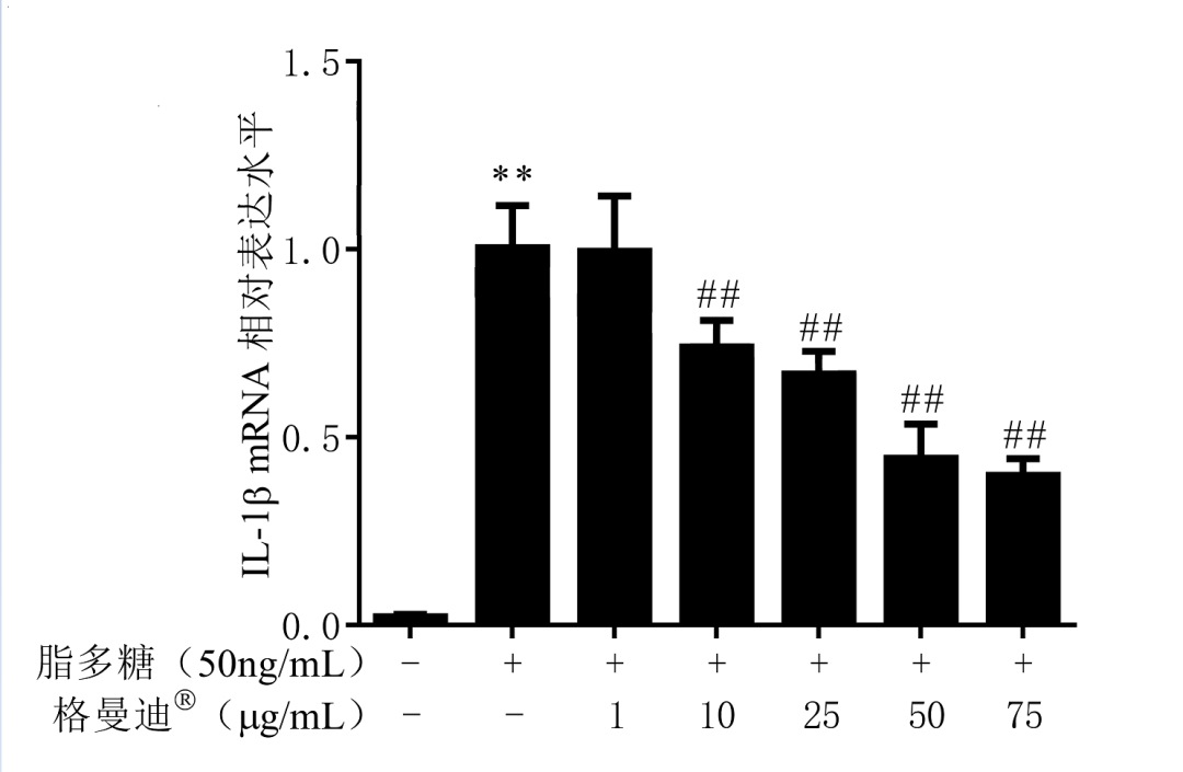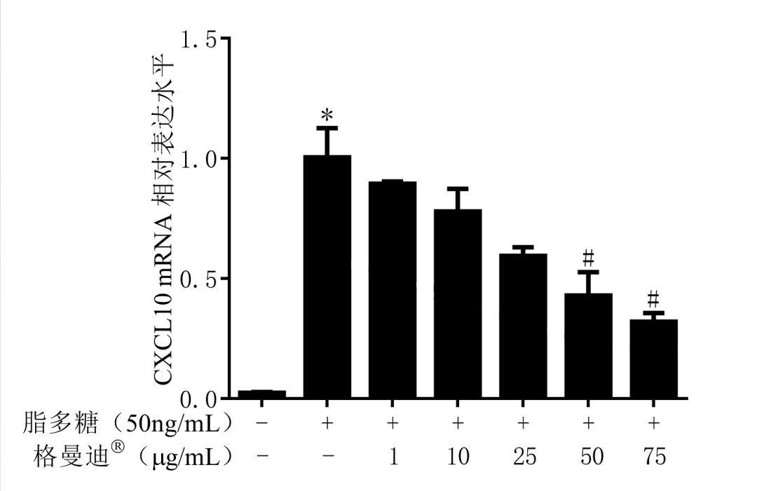 細(xì)胞學(xué)實驗表明:格曼迪®裂裥菌素顯著抑制內(nèi)毒素引起的IL1-β和趨化因子CXCL10過度表達(dá)